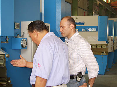 2005年6月23日上午,位于沙特阿拉伯首都利雅得市的沙特納美拉空壓機(jī)廠廠長(zhǎng)阿貝德·塔巴拉等一行來(lái)我公司參觀考察,阿貝德先生此行主要來(lái)考察我公司折彎?rùn)C(jī)、剪板機(jī)產(chǎn)品,考察中對(duì)我公司產(chǎn)品外觀、結(jié)構(gòu)均表示滿意并與我公司達(dá)成進(jìn)一步合作的意向!