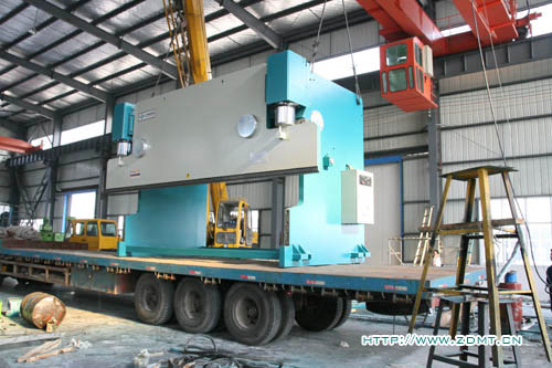 由于機器體積較大,高度超過3.5米,重量在50噸以上,所以采用了分體式運輸,工作臺與機器主體分離開來。這種大型機床由于其體積與重量的關系,并不是很常見,需求量相對來講少點,而對制造商的要求也相對比較高,其中無不體現(xiàn)中德產(chǎn)品在客戶心目中認可度!
