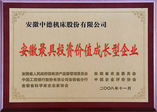 能夠進(jìn)入2008年安徽最具投資價(jià)值企業(yè)的評估百強(qiáng),是對企業(yè)各個(gè)方面的能力的權(quán)威肯定,因?yàn)樵u價(jià)結(jié)果將為各級政府決策提供參考依據(jù),為金融機(jī)構(gòu)、融資機(jī)構(gòu)的企業(yè)信貸決策提供參考依據(jù),為企業(yè)充分展示自身的成長能力、投資價(jià)值和戰(zhàn)略合作伙伴提供機(jī)會。此次進(jìn)入“2008安徽最具投資價(jià)值成長型企業(yè)百強(qiáng)榜”對于中德機(jī)床來說,意義深遠(yuǎn)。中德將在技術(shù)創(chuàng)新,開辟廣闊市場方面做進(jìn)一步的努力。