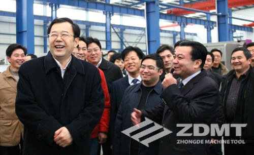 孫志剛副省長認真的參觀了中德機床一萬平方的裝配車間,他關(guān)切的詢問了鄭總關(guān)于中德機床的歷史來源,生產(chǎn)銷售情況,以及市場前景。鄭總也很熱情的向?qū)O志剛副省長匯報了情況:中德機床歷史十余年,名字的寓意是我公司是中國的企業(yè)但是目標是為追求德國卓越的產(chǎn)品品質(zhì)以及體現(xiàn)我公司“以德治企”的管理理念。公司近幾年來的快迅發(fā)展,雖然離不開公司一直以來的勵精圖治工作態(tài)度,更離不開的是省內(nèi)外發(fā)展的大背景,和中國開放的國際眼光。中德機床內(nèi)貿(mào)外貿(mào)并舉,業(yè)績逐年穩(wěn)步上升,勢頭良好。孫志剛副省長頻頻微笑點頭,對中德機床的企業(yè)狀況感到欣慰。同時,孫志剛副省長也激勵我公司,一定要抓住機遇,繼續(xù)發(fā)展。