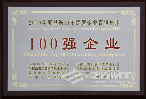 中德機床榮獲“2009年度馬鞍山民營企業(yè)雙百強”稱號